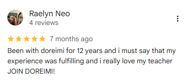 Doreimi builds a strong foundation in music for my child. Although she used 2 years to get her Grade 1 certification, she did very well in her sight reading and scales which is the most challenging aspect in the exam for most students. As she is now able to read notes independently, she is able to progress tremendously faster than her peers and is now preparing for her Grade 4 exam in just 6 months' time! I'm very glad that the teacher advised us not to rush her into exam when she just started learning music.
